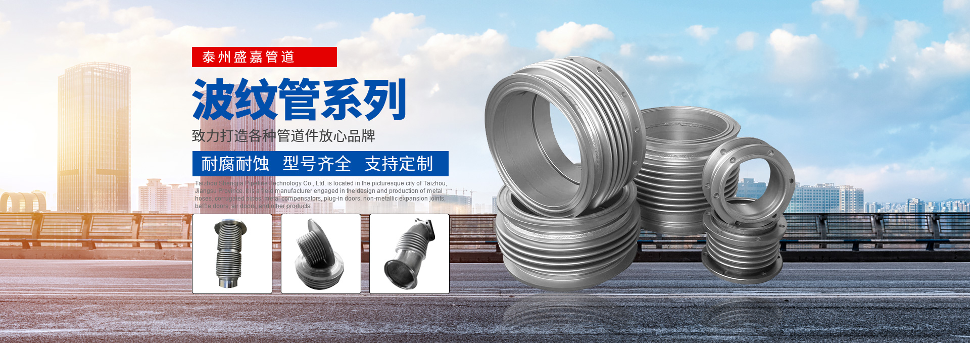 泰州盛嘉管道科技有限公司坐落于风景如画的江苏省泰州市,是从事设计、生产金属软管、波纹管、金属补偿器、插板门、非金属膨胀节、挡板门、风门等实地厂家。公司拥有各种先进生产、加工、检测设备和强大的技术力量支持。